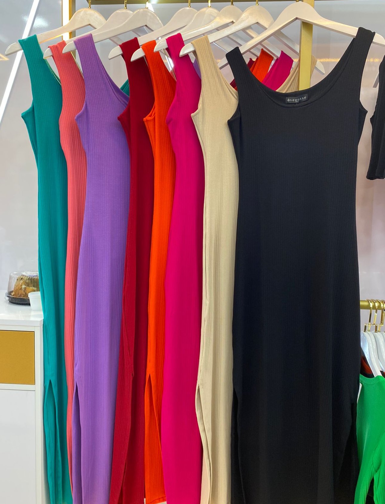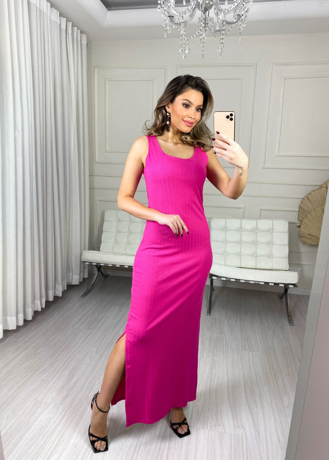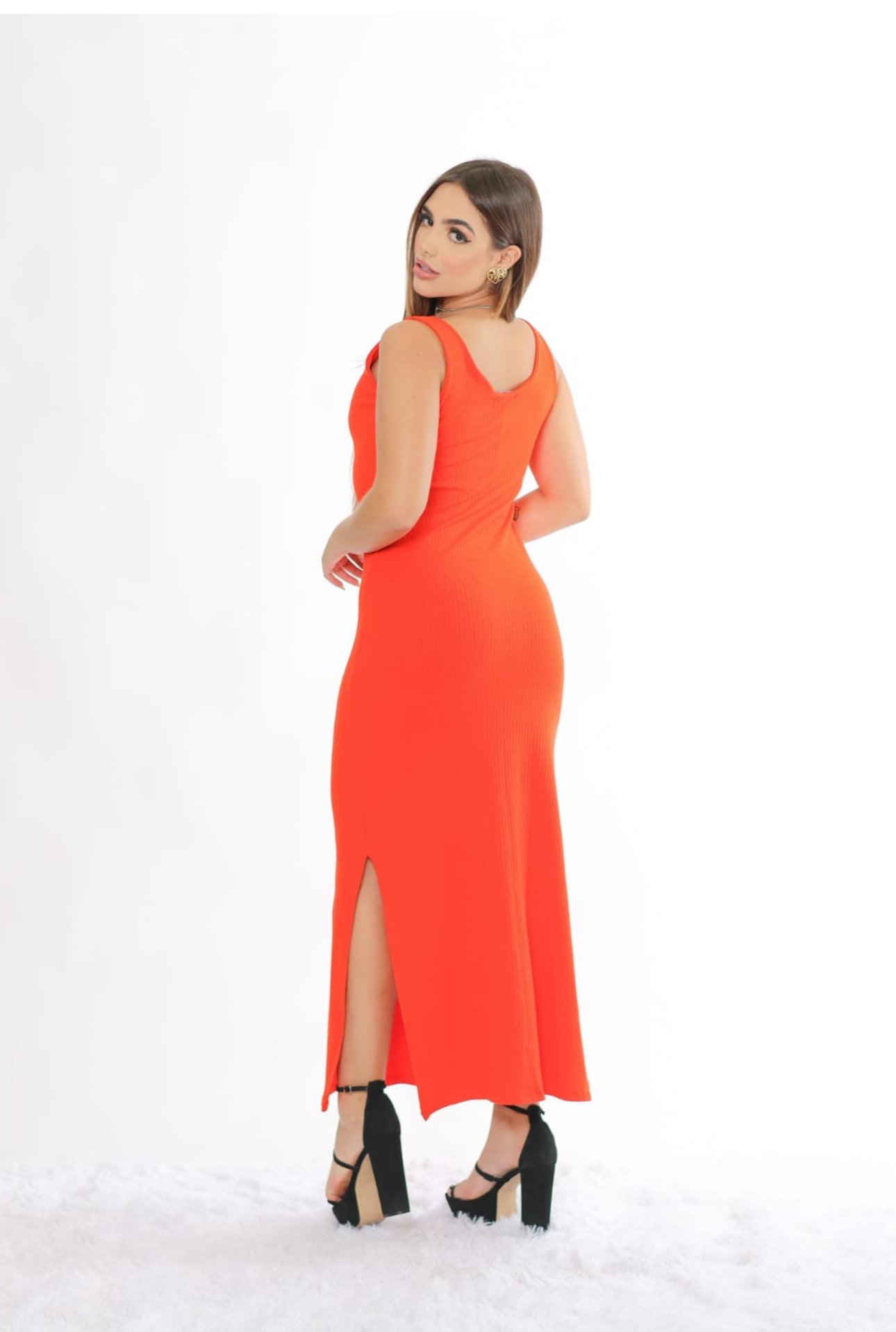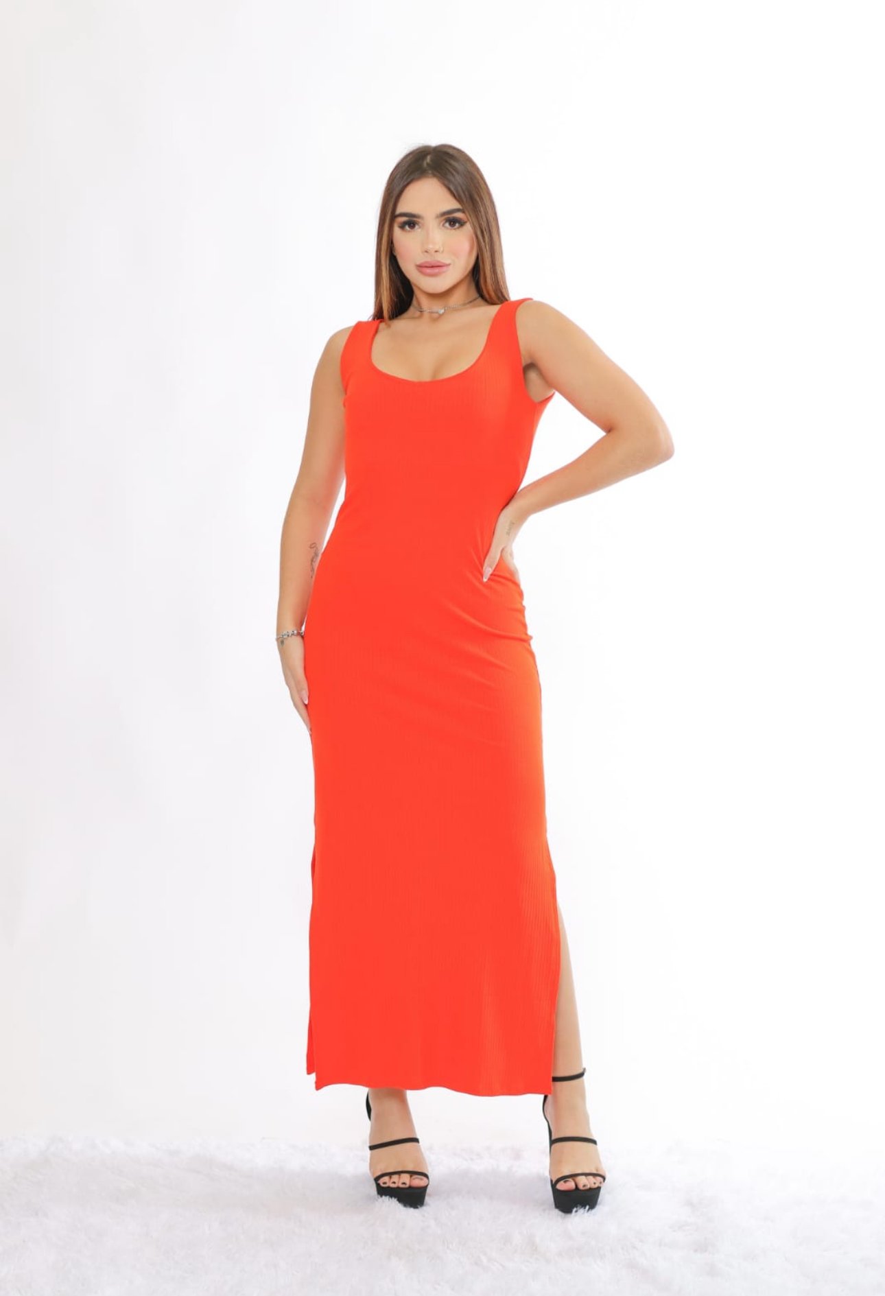 Uma peça que une estilo e conforto de forma excepcional. Confeccionado em tecido canelado premium, com uma mistura de viscose e elastano, este vestido regata com fenda é perfeito para diversas ocasiões, proporcionando um visual elegante e moderno.